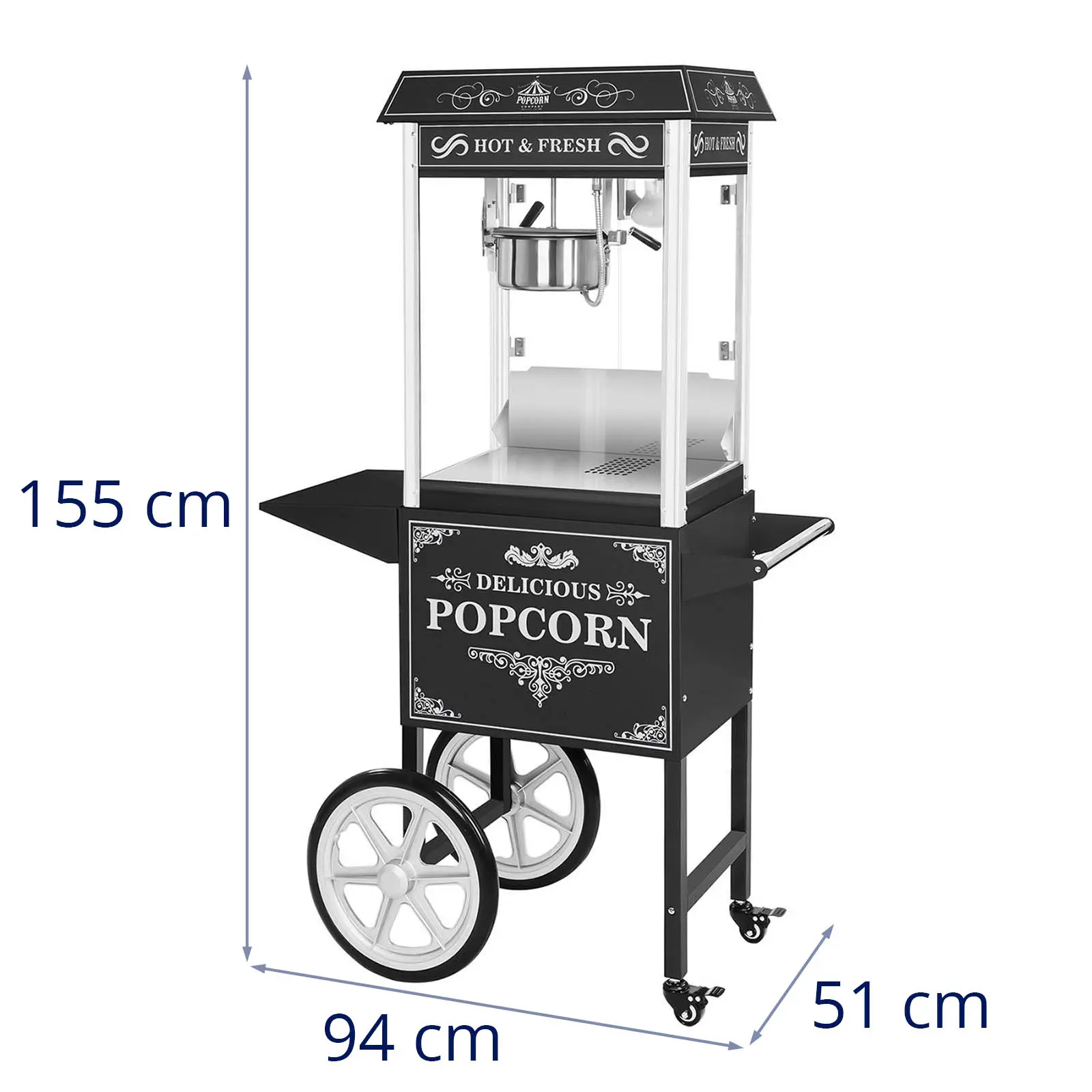 Popcornmaskine med vogn 88 L – 1600 W – retrodesign – sort – 94 x 51 x 155 cm
