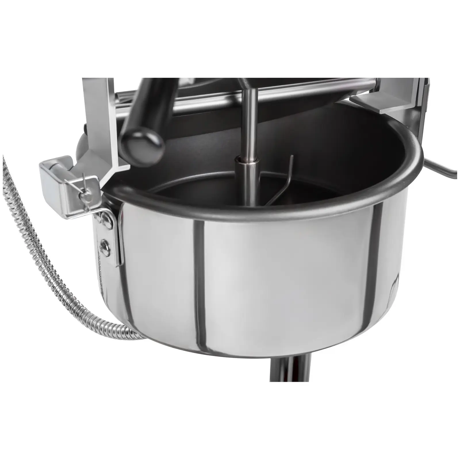Der er noget særligt nostalgisk over duften og lyden af frisklavede popcorn, der springer i gryden. Med denne popcornmaskine med vogn i elegant sort retrodesign får du ikke bare en effektiv og driftssikker løsning til popcornproduktion – du får også et visuelt midtpunkt, der skaber stemning og tilføjer charme til enhver begivenhed. Maskinen kombinerer æstetik med funktionalitet og er velegnet både til privat brug og professionelle arrangemente
